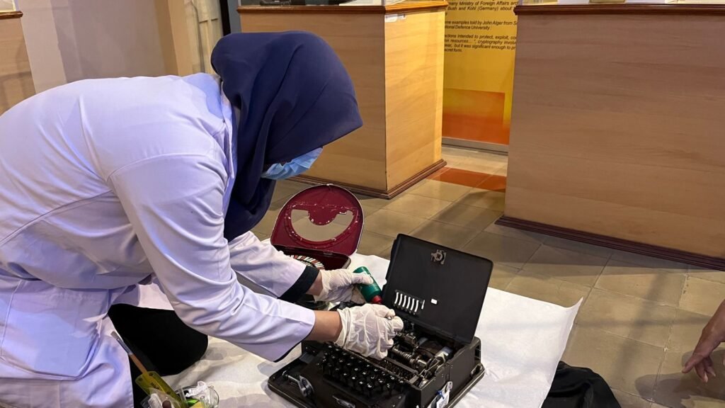 Kegiatan konservasi mesin Hagelin BC-543 meliputi pembersihan debu yang terdapat diantara keyboard besi menggunakan bahan kimia anti karat dengan metode pembersihan kering menggunakan alat berupa sikat, kain majun dan kuas. Hasil yang diapat adalah ditemukannya tampak mesin yang kusam dan polutan debu. Setelah dilakukannya kegiatan konservasi ini, maka koleksi mesin sandi Hagelin BC-543 dapat kembali dipamerkan dengan keadaan yang sudah bersih.