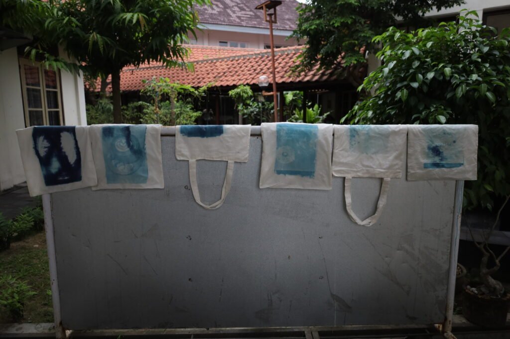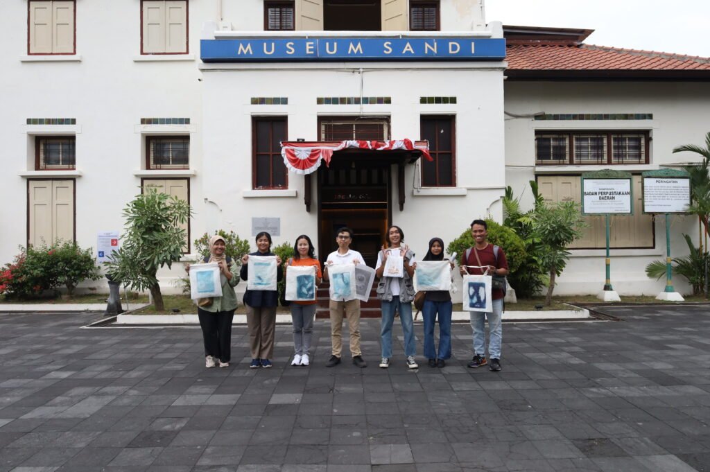 Museum Sandi dan Komunitas Old Photography Process ISI (KOPPI) Yogyakarta mengadakan kegiatan Workshop Cyanotype, teknik fotografi alternatif yang memanfaatkan cahaya UV untuk menciptakan cetakan biru klasik. Dengan media kertas dan larutan sensitif cahaya, peserta bereksperimen menata objek, menjemur karya di bawah sinar matahari, lalu menyaksikan magisnya perubahan warna menjadi biru tua yang memukau. Cetak biru bukan sekadar teknik kuno, tapi seni, sains, dan eksperimen yang seru di bawah sinar matahari! Mau coba juga? Nantikan workshop selanjutnya!
